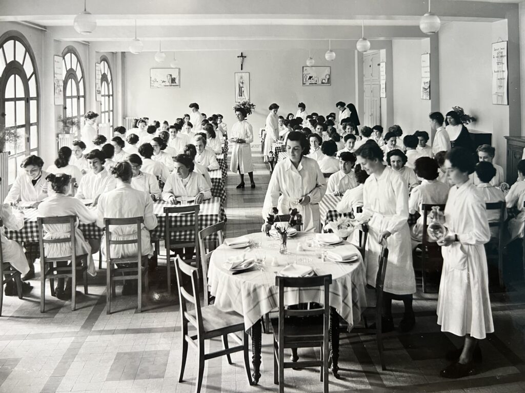 1954 voit la création d’une section spécifique de « Monitrice-éducatrice de l’enfance », destinée à former les futurs travailleurs sociaux. Cette section deviendra autonome en 1971, dépendra du ministère du travail et prendra le nom d’Institut Saint-Laurent. Deux spécialités y sont proposées : la formation de moniteurs éducateurs et celle d’animateurs sociaux. Sœur Gabrielle Klein (voir encadré), directrice depuis les débuts de l’Institut, en sera une figure marquante. En 1984, l’Institut s’installera à Écully, mais il retrouvera ses racines en 2020. Il reviendra au 123 montée de Choulans pour faire partie du pôle social du Campus Don Bosco à la rentrée 2025.